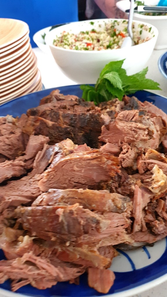 Place the meat on a tray and then place into an oven that has been pre-heated to 140C. Roast for 2 1/2 hours. After the first hour or so, check the meat and tighten the foil around the flesh.